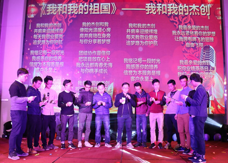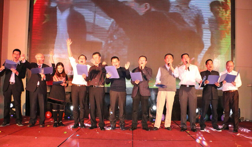 在度过三个小时的欢乐时光后,年会进入了尾声。全场人员齐齐进入演唱状态,伴随着优美的旋律,接连合唱了《相亲相爱一家人》、《同一首歌》、《朋友》三首歌曲。歌声飞扬,群情高涨,将现场气氛推向最高潮。大家放开歌喉,大声唱出心底的心声,尽情表达出对kaiyun开云电竞、对他人的祝福和感恩。所有人的歌声交织在一起,彼此的心灵也在密切地交流。在响亮动听的大合唱中,kaiyun开云电竞智能2016年度总结表彰大会暨2017迎新年会圆满落下了帷幕。